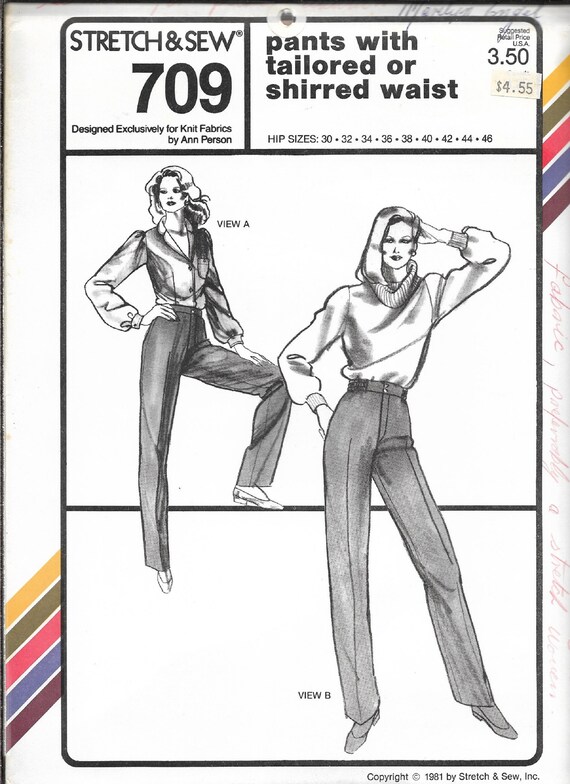 Misses Tailored Or Shirred Waist Pants Pattern Size 30 To 46 Etsy De